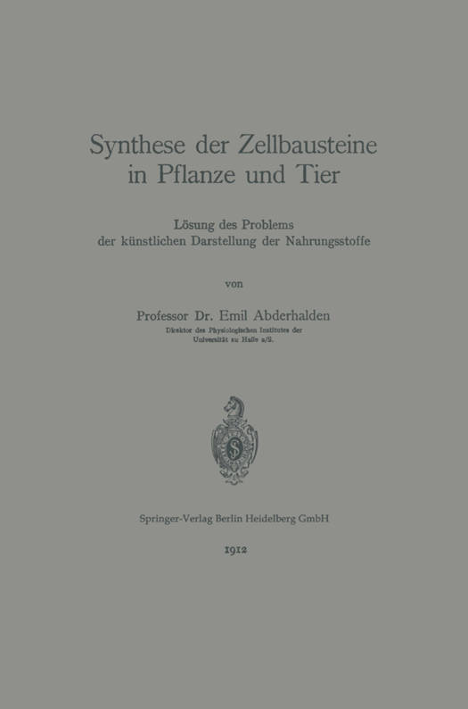 Dieser Buchtitel ist Teil des Digitalisierungsprojekts Springer Book Archives mit Publikationen, die seit den Anfängen des Verlags von 1842 erschienen sind. Der Verlag stellt mit diesem Archiv Quellen für die historische wie auch die disziplingeschichtliche Forschung zur Verfügung, die jeweils im historischen Kontext betrachtet werden müssen. Dieser Titel erschien in der Zeit vor 1945 und wird daher in seiner zeittypischen politisch-ideologischen Ausrichtung vom Verlag nicht beworben.