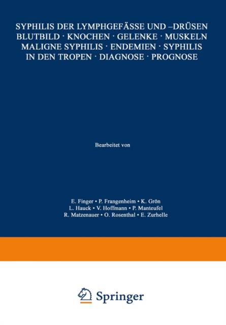 4. Syphilis Der Lymphgefässe Und -Drüsen Blutbild - Knochen - Gelenke - Muskeln Maligne Syphilis - Endemien - Syphilis in Den Tropen - Diagnose - Prognose