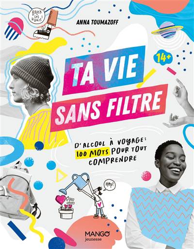 Que tu sois à la fin du collège, au lycée ou au début de tes études supérieures, que tu aies 14 ans, un peu moins ou beaucoup plus… Tu te poses forcément un milliard de questions sur ta vie, celle des gens qui t’entourent et sur la société. Tu as sûrement déjà entendu ça bien trop de fois, mais les années que tu vis sont intenses et pleines de changements, qui peuvent parfois être déstabilisants. Ton corps bouge, tes relations avec ta famille aussi, tes amitiés ne sont plus tout à fait les mêmes et tu te poses certainement plein de questions sur l’amour. Grâce aux médias et surtout aux réseaux sociaux, tu comprends plein de choses, mais tout va tellement vite et tu reçois une telle quantité d’infos que tu peux parfois t’y perdre un peu. D’alcool à voyage en passant par chagrin d’amour, influenceurs et influenceuses, orientation sexuelle ou santé mentale, 100 mots et expressions sont décryptés dans ce livre pour répondre à toutes tes questions, des plus simples aux plus complexes, sans jugement... et sans filtre !