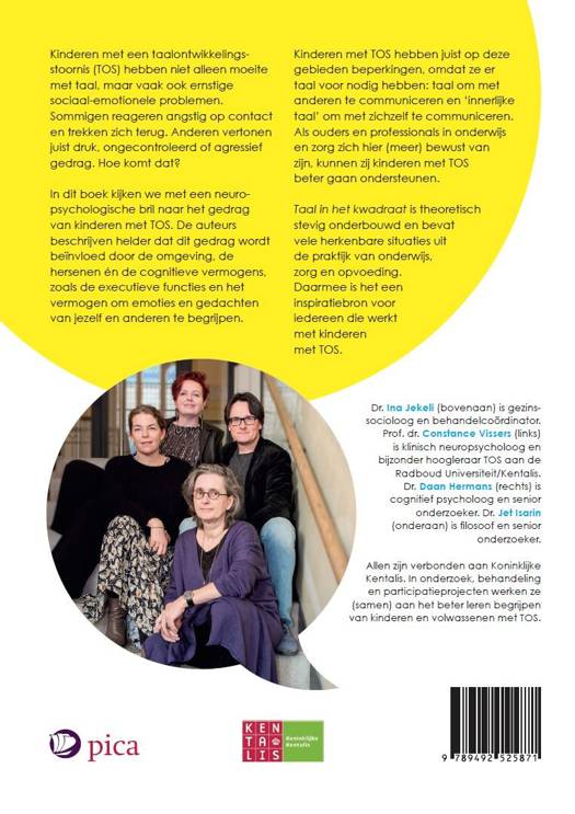Taal in het kwadraat is theoretisch stevig onderbouwd en bevat vele herkenbare situaties uit de praktijk van onderwijs, zorg en opvoeding. Daarmee is het een inspiratiebron voor iedereen die werkt met kinderen met TOS.