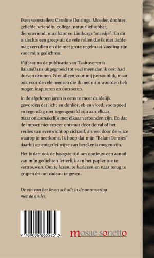 In de afgelopen jaren is eens te meer duidelijk geworden dat licht en donker, eb en vloed, voorspoed en tegenslag niet tegengesteld zijn aan elkaar, maar samen een geheel vormen. En dat de impact niet zozeer ontstaat door de val of het verlies van evenwicht, maar meer door de wijze waarop je neerkomt. Het is dan ook de hoogste tijd om opnieuw een aantal van mijn gedichten letterlijk aan het papier toe te vertrouwen. Om te lezen, te herlezen en naar terug te grijpen én om cadeau te geven.