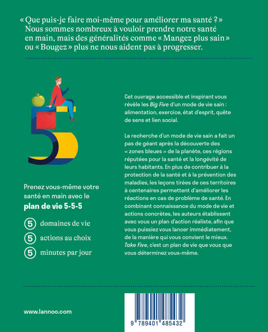 'Que puis-je faire moi-même pour améliorer ma santé ?' Nous sommes nombreux à vouloir prendre notre santé en main, mais des généralités comme 'Mangez plus sain' ou 'Bougez plus' ne nous aident pas à progresser. Prenez vous-même votre santé en main avec le plan de vie 5-5-5