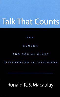 Talk That Counts examines age, gender, and social class differences in a gender-balanced sample of middle-class and working-class adolescents and adults, recorded under the same conditions. Differences between adults and adolescents provided the greatest number of statistically significant results, followed by differences between males and females. The smallest number of statistically significant differences were related to social class. The range of variation underlines the need to look at more than a single extra-linguistic variable when examining discourse. It also shows the dangers of generalizing about social class, for example, on the basis of a limited sample (e.g., adolescent boys).