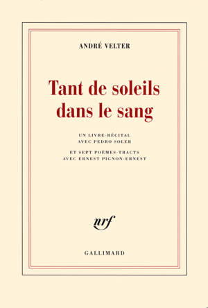 Livre-récital composé dans la résonance des musiques de Pedro Soler, Tant de soleils dans le sang exalte l'énergie qui court le monde, qui prend ses risques et ne cesse de reprendre souffle. Ici, des mots jetés sur les cordes d'une guitare flamenca entendent faire chants et sens à la fois. Ce sont des mots pour repartir et se retrouver à jamais en terrain découvert, avec des dessins d'Ernest Pignon-Ernest à placarder dans les rues. D'UN RYTHME DE FEU ET DE LARMES NOUS AVONS SECOUÉ LE SABLIER DU CIEL RAVIVÉ L'ÉCORCE DE LA TERRE MIS LE DESTIN AU GALOP ET SANS DOUTE EN DÉROUTE