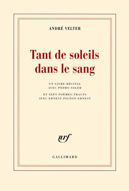Livre-récital composé dans la résonance des musiques de Pedro Soler, Tant de soleils dans le sang exalte l'énergie qui court le monde, qui prend ses risques et ne cesse de reprendre souffle. Ici, des mots jetés sur les cordes d'une guitare flamenca entendent faire chants et sens à la fois. Ce sont des mots pour repartir et se retrouver à jamais en terrain découvert, avec des dessins d'Ernest Pignon-Ernest à placarder dans les rues.