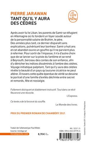 Voyage initiatique palpitant, Tant qu'il y aura des cèdres révèle la beauté d'un pays qu'aucune cicatrice ne peut altérer. À travers cette quête éperdue de vérité se dessine le portrait d'une famille d'exilés déchirée entre secret et remords, fête et nostalgie.