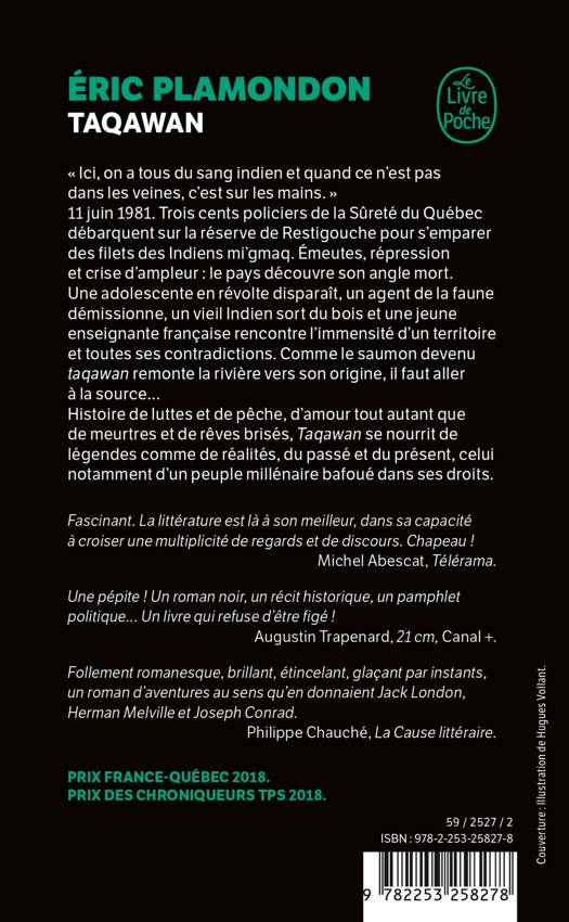 Une adolescente en révolte disparaît, un agent de la faune démissionne, un vieil Indien sort du bois et une jeune enseignante française découvre l’immensité d’un territoire et toutes ses contradictions. Comme le saumon devenu taqawan remonte la rivière vers son origine, il faut aller à la source… Histoire de luttes et de pêche, d’amour tout autant que de meurtres et de rêves brisés, Taqawan se nourrit de légendes comme de réalités, du passé et du présent, celui notamment d’un peuple millénaire bafoué dans ses droits.