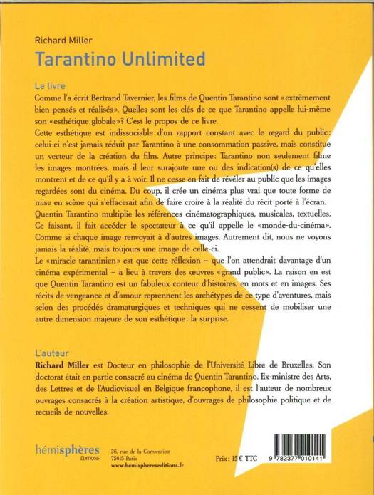 Comme l'a écrit Bertrand Tavernier, les films de Quentin Tarantino sont « extrêmement bien pensés et réalisés ». Quelles sont les clés de ce que Tarantino appelle lui-même son « esthétique globale » ? C'est le propos de ce livre, qui révèle ce que son auteur appelle le « miracle tarantinien » : un cinéma très pensé et très construit mais pourtant grand public. C'est que Tarantino est avant tout un fabuleux conteur d'histoires...