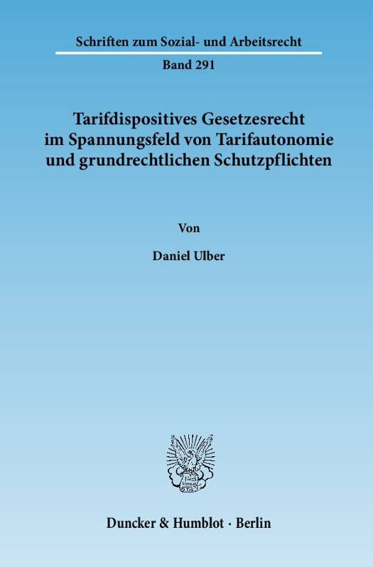 Die Abweichung von zwingendem Gesetzesrecht durch Tarifvertrag hat in Deutschland eine lange Tradition. Durch das Nebeneinander von staatlicher und tarifautonomer Regulierung in Form von tarifdispositivem Gesetzesrecht stehen Tarifautonomie und gesetzliche Regulierung des Arbeitsrechts in einem steten Spannungsverhältnis. Daniel Ulber untersucht vor diesem Hintergrund das Verhältnis von Tarifautonomie und staatlicher Gesetzgebung. Er kommt zu dem Ergebnis, dass die Tarifautonomie nicht vor der Setzung staatlicher Mindestarbeitsbedingungen schützt. Dies steht im Widerspruch zu Sinn und Zweck der Tarifautonomie.