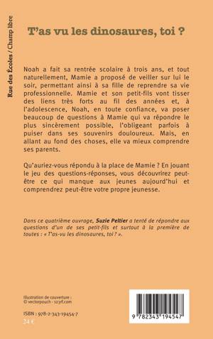 Noah a fait sa rentrée scolaire à trois ans, et Mamie a proposé de veiller sur lui le soir, permettant ainsi à sa fille de reprendre sa vie professionnelle. Mamie et son petit-fils vont tisser des liens au fil des années et, à l’adolescence, Noah, en toute confiance, va poser beaucoup de questions à Mamie qui va répondre le plus sincèrement possible, l’obligeant parfois à puiser dans ses souvenirs douloureux. Mais, en allant au fond des choses, elle va mieux comprendre ses parents. Qu’auriez-vous répondu à la place de Mamie ? En jouant le jeu des questions-réponses, vous découvrirez peut-être ce qui manque aux jeunes aujourd’hui et comprendrez peut-être votre propre jeunesse.