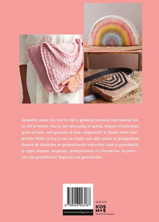 Gehaakte tassen zijn hot! Jennifer Stiller leert je hoe ze ook nog eens gemakkelijk zelf haakt. Er is een tas voor elke smaak en stijl. Of je nu houdt van eenvoudig of speels, elegant of bohemien, groot of klein, snel gemaakt of meer uitgewerkt. Een tas is net zo individueel en uniek als de drager ervan. Dankzij de duidelijke en gedetailleerde instructies leer je allerlei verschillende tassen zelf haken: een shopper, mobiele-telefoontas, boodschappentas, en nog veel meer. Leuk voor jezelf, of om cadeau te doen. De patronen zijn geschikt voor beginners en gevorderden.