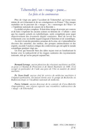 Plus de vingt ans après l'accident de Tchernobyl, qu'avons-nous retenu de cet événement et de ses conséquences en France ? Des images martelées sur le parcours du "nuage", les "mensonges de l'Etat" et "l'épidémie nationale de cancers de la thyroïde". La réalité est plus complexe : cet ouvrage revient aux sources et les anciens acteurs ou témoins de "l'affaire" s'expriment ici, ainsi que des experts en radiobiologie, seuls compétents pour juger objectivement des dégâts sanitaires...