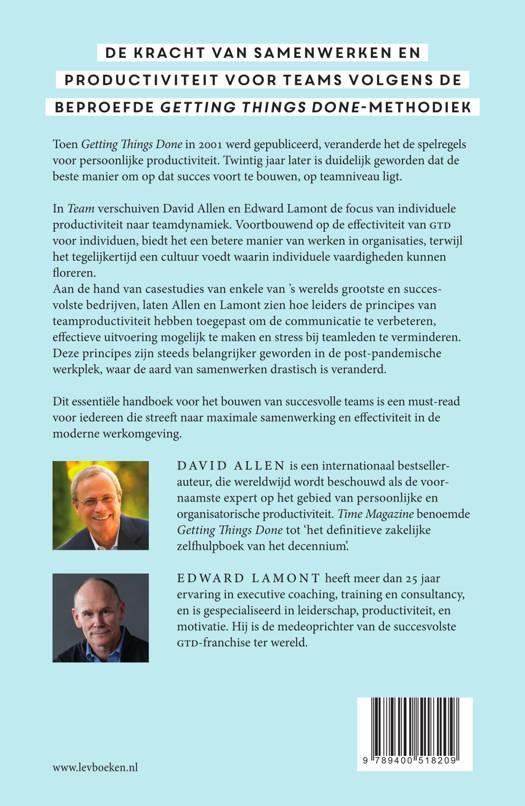 In Team van David Allen en Edward Lamont, verschuift de focus van individuele productiviteit naar teamdynamiek. Gebaseerd op de beproefde principes van Allen's revolutionaire Getting Things Done-methodiek, is dit boek een onmisbare gids voor moderne organisaties die streven naar maximale samenwerking en effectiviteit.