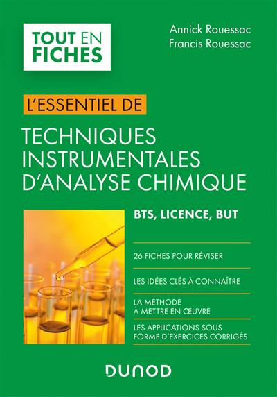 Conçu pour faciliter aussi bien l’apprentissage que la révision avant les examens ou les concours, cet ouvrage permet de comprendre facilement et de réviser rapidement l’essentiel des notions de techniques instrumentales d’analyse chimique utiles aux étudiants de BTS, Licence et BUT, présentées en fiches pédagogiques.