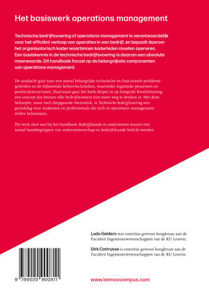 Technische bedrijfsvoering of operations management is verantwoordelijk voor het efficiënt verloop van operaties in een bedrijf, en bepaalt daarom het organisatorisch kader waarbinnen kaderleden moeten opereren. Een basiskennis in de technische bedrijfsvoering is daarom een absolute meerwaarde. Dit handboek focust op de belangrijkste componenten van operations management.