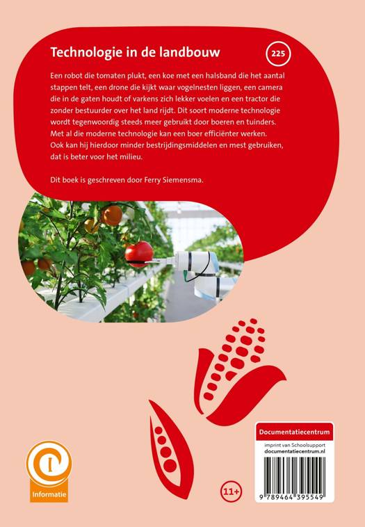 Technologie in de landbouw Een robot die tomaten plukt, een koe met een halsband die het aantal stappen telt, een drone die kijkt waar vogelnesten liggen, een camera die in de gaten houdt of varkens zich lekker voelen en een tractor die zonder bestuurder over het land rijdt. Dit soort moderne technologie wordt tegenwoordig steeds meer gebruikt door boeren en tuinders. Met al die moderne technologie kan een boer efficiënter werken. Ook kan hij hierdoor minder bestrijdingsmiddelen en mest gebruiken, dat is beter voor het milieu.