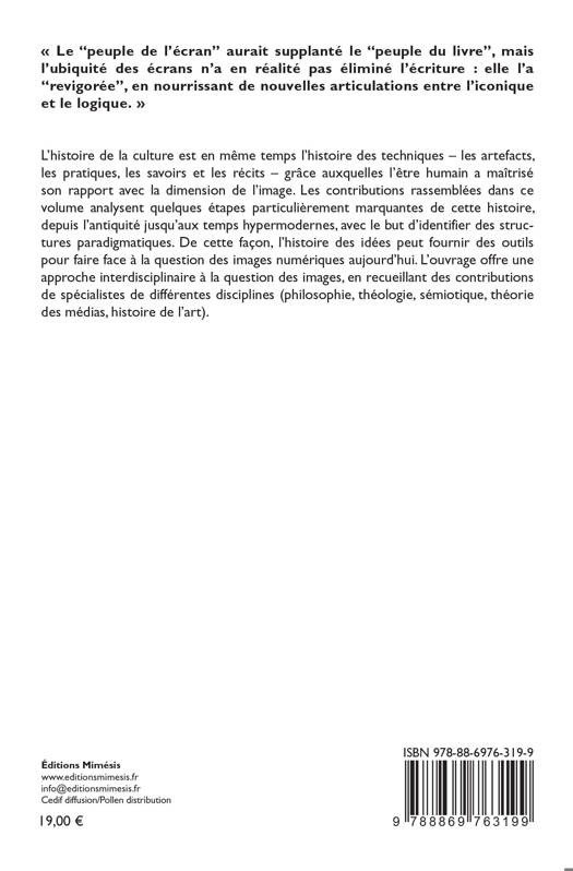 Ce volume rassemble des contributions portant sur la question des images, en particulier sur les différentes théories de l’image présentes dans l’histoire de la pensée occidentale. Des paradigmes interprétatifs et théoriques différents sont traités, allant de l’antiquité jusqu’à l’hypermodernité. Dans une première partie, les auteurs analysent des aspects particuliers de l’histoire des théories des images dans la pensée occidentale, en montrant comment l’histoire des idées peut fournir des outils pour faire face à la question des images numériques aujourd’hui. La deuxième partie se focalise sur les images numériques, avec des contributions dédiées aux questions spécifiques du débat contemporain. L’ouvrage offre une approche interdisciplinaire, en recueillant des contributions de spécialistes de différentes disciplines (philosophie, théologie, sémiotique, théorie des médias, histoire de l’art).