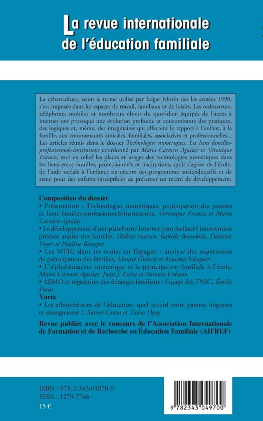 La cyberculture et l'accès à internet généralisé ont provoqué une évolution profonde dans les pratiques qui affectent le rapport à l'enfant. Ces articles mettent en relief les places et usages des technologies numériques dans les liens entre familles, professionnels et institutions, qu'il s'agisse de l'école, de l'aide sociale à l'enfance ou encore des programmes socioéducatifs et de santé pour des enfants susceptibles de présenter un retard de développement.