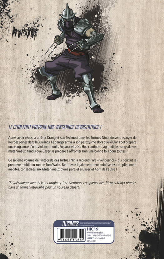 Un concentré d'action attend les lecteurs dans ce sixième volume qui intègre l'arc Vengeance, dans lequel les Tortues Ninja doivent affronter un Clan Foot plus décidé que jamais à les éliminer. Casey doit également combattre le terrible gang des Purple Dragons menés par son propre père, Hun.