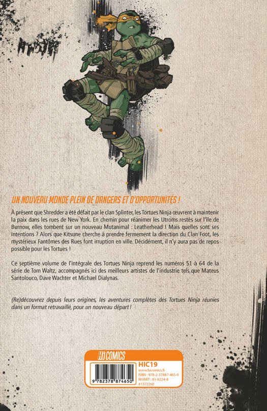 Dans cette septième intégrale de la série Tortues Ninja, Tom Waltz entame la seconde moitié de son run iconique, accompagné d'artistes talentueux tels que Mateus Santolouco, Dave Wachter et Michael Dialynas. Le volume regroupe les tomes 10 à 12 (les numéros 51 à 64) de la précédente édition au sein de 350 pages d'action explosive pour ce qui reste l'une des meilleures séries de « super-héros » modernes.