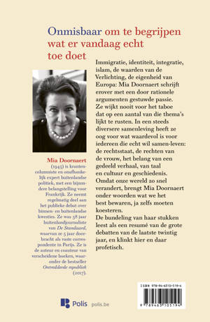 Mia Doornaert (1945) is krantencolumniste en onafhankelijk expert buitenlandse politiek, met een bijzondere belangstelling voor Frankrijk. Ze neemt regelmatig deel aan het publieke debat over binnen- en buitenlandse kwesties. Ze was 38 jaar buitenlandjournaliste van De Standaard, waarvan ze 5 jaar doorbracht als vaste correspondente in Parijs. Ze is de auteur en coauteur van verscheidene boeken, waaronder het succesvolle Ontredderde republiek (2017).