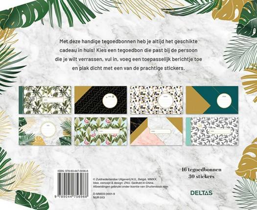 Met deze handige tegoedbonnen heb je altijd het geschikte cadeau in huis! Kies een tegoedbon die past bij de persoon die je wilt verrassen, vul in, voeg een toepasselijk berichtje toe en plak dicht met een van de prachtige stickers. 16 uitscheurbare tegoedbonnen met 30 bijbehorende stickers.