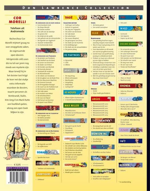 Rechercheur Cor Morelli keert na een afwezigheid van 10 jaar weer terug met open dossiers. Aloys Oosterwijk liet zijn sympathieke rechercheur Cor Morelli, na een afwezigheid van meer dan 10 jaar, herrijzen in het stripblad Eppo. Dit deed hij door Morelli op te zadelen met een aantal onopgeloste zaken, de zogenaamde open dossiers. Intrigerende mysteries waarin o.a. Rembrandt, Stalin, Kim Jong-il en Mark Rutte een hoofdrol spelen. Oosterwijk geeft de lezer net iets meer informatie waardoor deze de ware toedracht achter de open dossiers te weten komt, terwijl MOrelli in het duister blijft tasten.