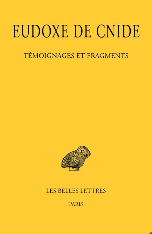 Eudoxe de Cnide etait un celebre savant et philosophe, contemporain de Platon et d'Aristote. Ce volume reunit l'integralite des fragments et temoignages antiques sur sa vie et son uvre, dont de nombreux textes ignores ou inedits jusqu'a present. Il contient egalement la premiere traduction integrale du corpus dans une langue moderne. La notice introductive offre une synthese sur la vie et l'uvre d'Eudoxe, et les notes de commentaire expliquent et contextualisent chaque passage. Une attention particuliere est portee aux contributions d'Eudoxe dans l'histoire des mathematiques, de l'astronomie, de l'astrologie, de la philosophie et de la geographie, ainsi qu'au role d'Eudoxe dans les echanges intellectuels entre le monde grec et d'autres grandes civilisations antiques comme l'Egypte et l'Empire perse, et a la celebrite dont jouit Eudoxe jusqu'a la fin de l'Antiquite.
