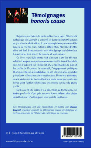 Ce livre reproduit les discours prononcés par trente-huit personnalités lorsque leur a été octroyé le doctorat honoris causa de l'Université catholique de Louvain. Les thèmes abordés reflètent les préoccupations de l'université et de la société d'aujourd'hui : l'éducation, la spiritualité, la paix et les droits de l'homme, la pauvreté, l'engagement politique, l'Europe et l'économie durable. Ces textes offrent des pistes de réflexion et d'action pour une société meilleure.
