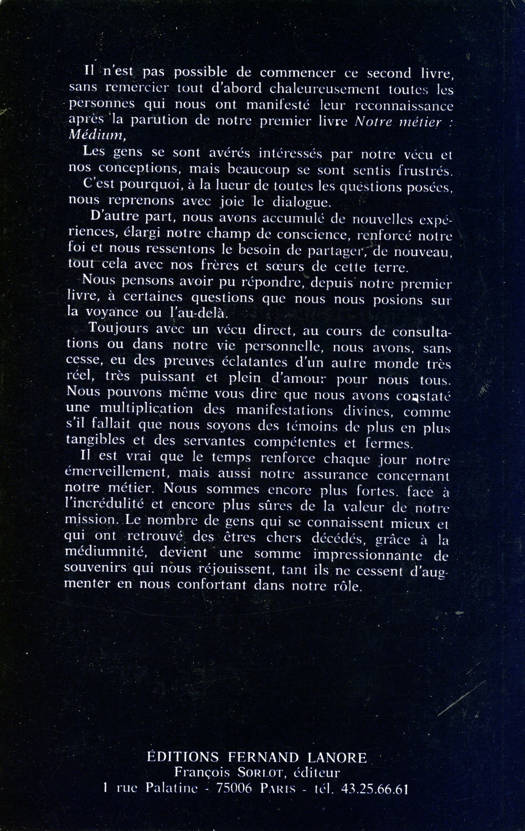 Ce livre retrace l'expérience de deux jeunes femmes, face à la voyance et à la médiumnité.