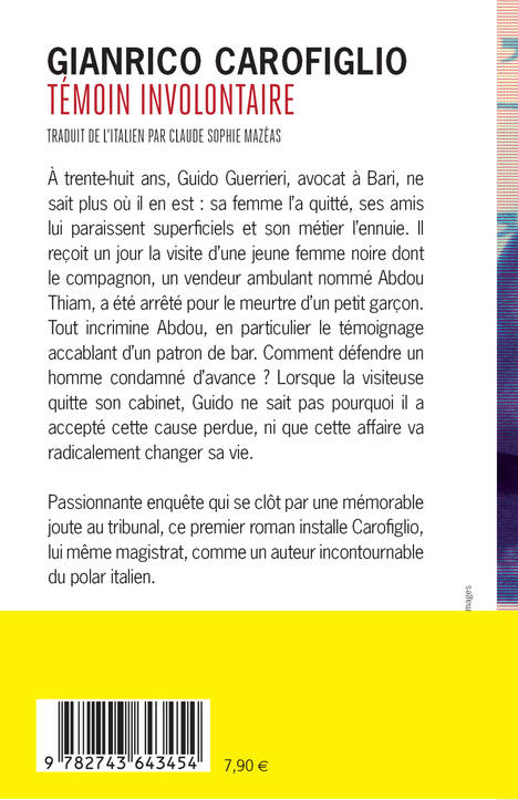 À trente-huit ans, Guido Guerrieri, avocat à Bari, ne sait plus où il en est : sa femme l'a quitté, ses amis lui paraissent superficiels et son métier l'ennuie. Il reçoit un jour la visite d'une jeune femme noire dont le compagnon, un vendeur ambulant nommé Abdou Thiam, a été arrêté pour le meurtre d'un petit garçon. Tout incrimine Abdou, en particulier le témoignage accablant d'un patron de bar. Comment défendre un homme condamné d'avance ? Lorsque la visiteuse quitte son cabinet, Guido ne sait pas pourquoi il a accepté cette cause perdue, ni que cette affaire va radicalement changer sa vie.