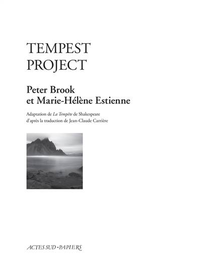 «La Tempête» est une énigme où s'associent la quête de la vengeance et celle de l'apaisement pour parvenir à la liberté acquise au terme d'une aventure agitée par ces contrastes ; ce texte clôt aussi le théâtre de Shakespeare, ayant comme dernier mot : "libre" ("«free»"). "Être ensemble, il n'y a que cela qui donne une vraie légitimité à cette chose qu'on appelle le théâtre", avoue ce Prospero qu'est Peter Brook, accompagné par Marie-Hélène Estienne dans son voyage à travers ce condensé de «La Tempête», que le grand metteur en scène explore depuis son plus jeune âge.