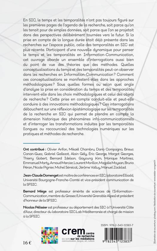 Participant d'une nouvelle dynamique pour penser le temps et les temporalités en Information-Communication, cet ouvrage aborde un ensemble d'interrogations aussi bien du point de vue des théories que des méthodes. Ces interrogations débouchent sur une réflexion épistémologique sur les temporalités de la recherche en SIC qui permet de prendre en compte la dimension historique des phénomènes info-communicationnels et d'interroger les transformations induites par les temporalités des technologies numériques sur les pratiques et méthodes de recherche.