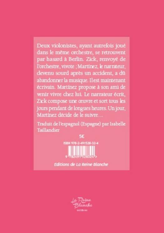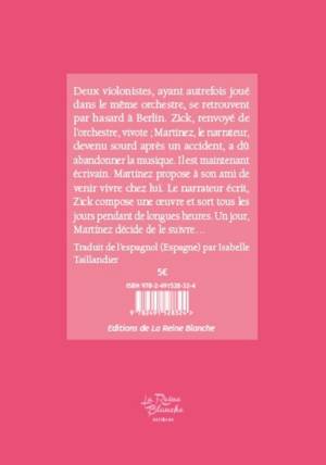Deux violonistes, ayant autrefois joué dans le même orchestre, se retrouvent par hasard à Berlin. Zick, renvoyé de cet orchestre, vivote ; Mártinez, le narrateur, devenu sourd après un accident, a dû abandonner la musique. Il est maintenant écrivain. Mártinez propose à son ami de venir vivre chez lui. Le narrateur écrit, Zick compose une oeuvre et sort tous les jours pendant de longues heures. Un jour, Mártinez décide de le suivre...