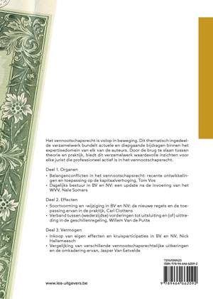 Het vennootschapsrecht is volop in beweging. Dit thematisch ingedeelde verzamelwerk bundelt actuele en diepgaande bijdragen binnen het expertisedomein van elk van de auteurs. Door de brug te slaan tussen theorie en praktijk, biedt dit verzamelwerk waardevolle inzichten voor elke jurist die professioneel actief is in het vennootschapsrecht.