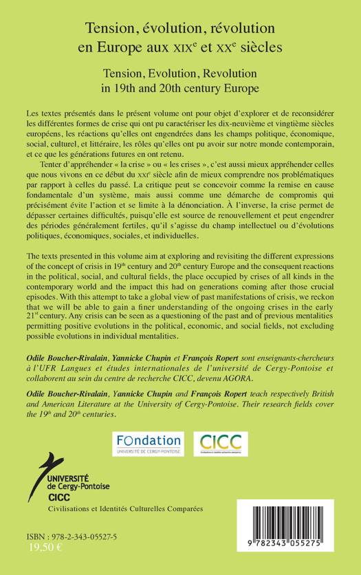 Les textes en français et en anglais présentés dans ce volume explorent et reconsidèrent les différentes formes de crise qui ont eu lieu en Europe au 19ème et 20ème siècle, les réactions qu'elles ont engendrées et les rôles qu'elles ont pu avoir sur notre monde contemporain. Comprendre les crises antérieures, c'est aussi mieux appréhender celle que nous vivons aujourd'hui. La crise est à la fois remise en cause et dépassement puisqu'elle est source de renouvellement et de fertilité.
