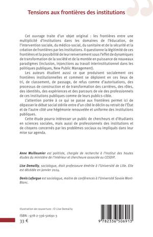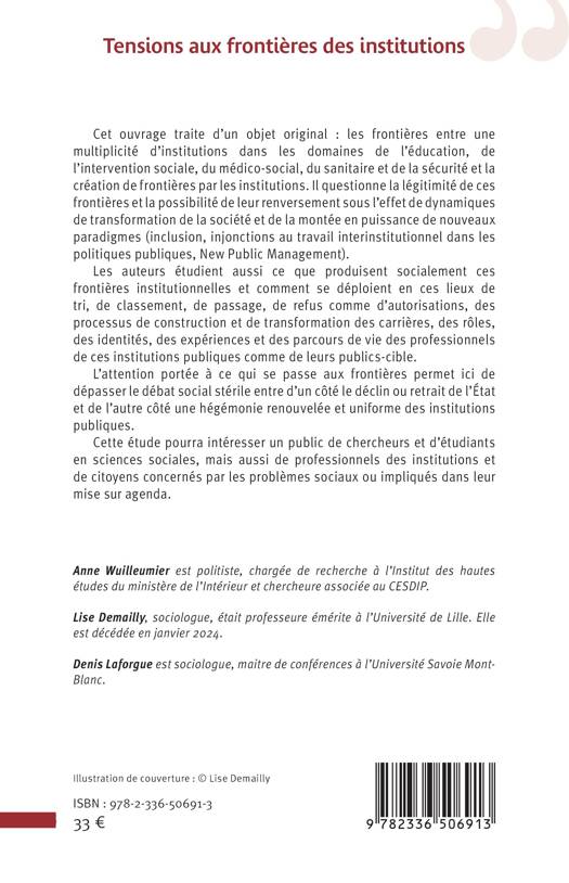 Cet ouvrage traite d’un objet original : les frontières entre une multiplicité d’institutions dans les domaines de l’éducation, de l’intervention sociale, du médico-social, du sanitaire et de la sécurité et la création de frontières par les institutions. Il questionne la légitimité de ces frontières et la possibilité de leur renversement sous l’effet de dynamiques de transformation de la société et de la montée en puissance de nouveaux paradigmes (inclusion, injonctions au travail interinstitutionnel dans les politiques publiques, New Public Management). Les auteurs étudient aussi ce que produisent socialement ces frontières institutionnelles et comment se déploient en ces lieux de tri, de classement, de passage, de refus comme d’autorisations, des processus de construction et de transformation des carrières, des rôles, des identités, des expériences et des parcours de vie des professionnels de ces institutions publiques comme de leurs publics-cible. L’attention portée à ce qui se passe aux frontières permet ici est de dépasser le débat social stérile entre d’un côté le déclin ou retrait de l’État et de l’autre côté une hégémonie renouvelée et uniforme des institutions publiques. Cette étude pourra intéresser un public de chercheurs et d’étudiants en sciences sociales, mais aussi de professionnels des institutions et de citoyens concernés par les problèmes sociaux ou impliqués dans leur mise sur agenda.