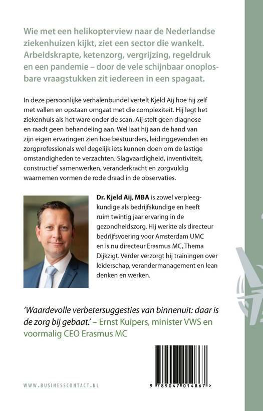 Aij legt de gang van zaken in het ziekenhuis als het ware onder de scan. Hij stelt geen diagnose en raadt geen behandeling aan, maar laat aan de hand van zijn eigen ervaringen zien hoe bestuurders, leidinggevenden en zorgprofessionals wel degelijk iets kunnen doen om de lastige omstandigheden te verzachten. Het enige wat zij nodig hebben is de moed om uit te dokteren wat werkt en wat niet.