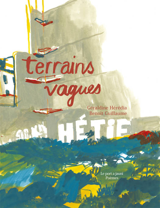Le thème des terrains vagues a été inspiré par le travail graphique de Benoît Guillaume, qui s’installe à même les rues, à même les champs, à même les gens pour croquer leurs instants. Ses carnets d’illustrations sur le vif, qu’il auto-édite, parlent selon nous du frottement entre l’urbain et le végétal, le construit et le naturel, la culture et la nature. Nous avons proposé à Géraldine Hérédia de s’emparer de ces différentes thématiques pour écrire neuf poèmes de "Terrains vagues" dans la veine de ceux qu’elle a déjà écrits pour Le Port a jauni : "Poèmes en paysages" (illustrations de Clothilde Staës, 2015), "Poèmes du soir" (illustrations de Corinne Dentan, 2016), "Poèmes sur un fil" (illustrations de Clothilde Staës, 2017). Ces trois recueils ont été conçus selon un même principe : partir des images et de thématiques choisies ensemble pour écrire des poèmes, exercice dans lequel Géraldine Hérédia excelle ! Le corps en paysage ou le corps comme paysage était la thématique du premier ; le monde de la nuit, la peur, les bruits bizarres pour le second ; le cirque, l'errance, l'instant suspendu pour le troisième. Dans ce nouveau recueil, les "Terrains vagues" sont explorés comme lieux frontières : lieu de l’enfance où nous vivons nos premières expériences de transgression, d’amitiés, d’amours ; lieu où l’on se cache à l’abri des regards du monde ; lieu abandonné, où la nature s’installe sur les traces de la ville, mobilier urbain et bâti.