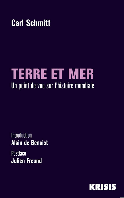 L’homme est un Terrien. C’est la raison pour laquelle il a appelé Terre, et non pas Mer, la planète sur laquelle il vit. La Terre est faite de territoires distincts les uns des autres, séparés par des frontières. L’autorité proprement politique est celle qui s’exerce sur un territoire. La Mer, au contraire, ignore les limites et les frontières naturelles, elle ne connaît que des flux et des reflux. Elle est le modèle de l’activité commerciale, alors que l’existence politique a un caractère purement tellurique. L’histoire, selon Carl Schmitt, est avant tout l’histoire d’une lutte séculaire entre les puissances maritimes et les puissances terrestres et continentales. L’Angleterre, au XVIe siècle, a été la première à s’engager sur la voie de l’existence maritime. L’opposition Terre-Mer a dès lors revêtu un caractère géopolitique, qui a exercé une influence essentielle sur l’évolution du droit et des relations internationales.