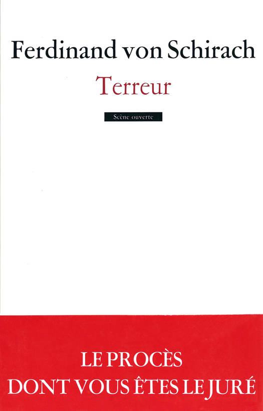 L'auteur allemand, criminaliste de profession, qui a connu un vif succès avec «Crimes» ou «Coupables», revient avec une pièce de théâtre où l'on assiste au procès d’un soldat. Celui est accusé d'avoir fait tomber un avion de ligne avec 300 passagers, parce que des terroristes à bord menaçaient de faire exploser un stade de foot de 70 000 spectateurs. Un cas de justice et de conscience.