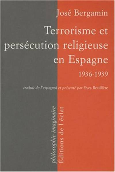 «En Espagne, les anarchistes brûlèrent les églises; les catholiques ont brûlé l’Église.» Ces paroles d’un prêtre, rapportées par José Bergamín, résument tout le drame qui est au cœur de Terrorisme et persécution religieuse en Espagne, tout le drame espagnol tel qu’il a pu être vécu par cette Espagne du Christ et de la République, trahie par une Église soutenant le fascisme sous toutes ses formes. Écrits de combat d’une rare violence, les textes publiés ici sont un témoignage sans équivalent de ce qu’a pu être la Guerre civile espagnole de 1936 à 1939, entre catholicisme, communisme et anarchisme. Pièces à conviction qui n’abandonnent jamais la littérature, pamphlets toujours épris de vertige mystique, philippiques portées par l’action, les écrits de Bergamín rendent compte au jour le jour des drames d’une guerre intérieure et extérieure et nous en livrent le sens théologique: quel Christ pourra empêcher le déferlement de la barbarie en Europe si, sur une terre soumise aux forces de la mort, sa Croix est livrée au diable par son Église elle-même? Publié à Mexico en 1941 en même temps que Le puits de l’angoisse, Terrorisme et persécution religieuse en Espagne est accompagné d’un abondant dossier de textes et de documents inédits sur la Guerre civile espagnole rassemblés par Yves Roullière. Espagnol s'il en fut, figure de proue de sa génération, bien que délibérément classique et paradoxal, José Bergamín (1895-1983) n’a cessé de brouiller les pistes. Connu en France pour ses essais sur la Tauromachie (L'art de birlibirloque, La solitude sonore du Torero) la majeure partie de son œuvre est consacrée à la culture espagnole et religieuse. Pour les Éditions de l'éclat, Yves Roullière a traduit et présenté quatre autres de ses livres: L’Espagne en son labyrinthe théâtral au XVIIe siècle (1992), L’importance du démon et autres choses sans importance (1993) et Le puits de l’angoisse (1997) et En tauromachie tout est vérité et tout est mensonge (2012).