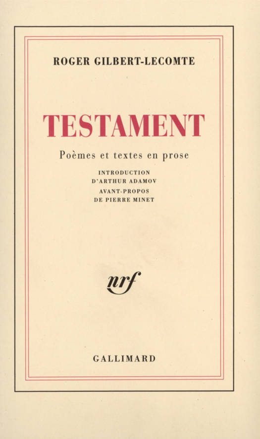Telle qu'elle nous est parvenue, composée de fragments accolés sans ordre apparent, de notes éparses et de projets simplement énoncés, l'oeuvre de Roger Gilbert-Lecomte manque de la structure rigoureuse qui devait en constituer le fondement, et, dans une certaine mesure, se réduit à des miettes. Mais on pourrait lui appliquer ce que Friedrich Schlegel disait des Fragments de Novalis : "Poussière, oui ! Mais poussière de diamants !" Écartelé par les contradictions de son existence tourmentée, conscient du gouffre creusé par le langage entre sa vision du monde et l'expression écrite qu'il lui fallait en donner, Roger Gilbert-Lecomte a gravi jusqu'au sommet ce calvaire qu'est l'exigence innée d'absolu.