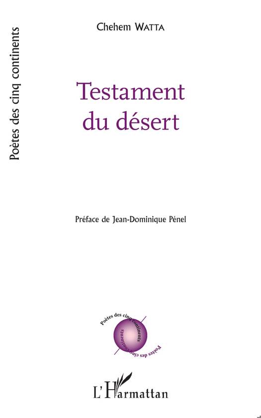 Dans ce Testament du désert, Chehem Watta tente d'échapper aux certitudes, de dépasser la métaphore du monde perdu et d'accepter le dérèglement des horizons nomades. Ce recueil évoque le temps du désert et sa gloire... Testament du désert pose deux questions dans quelle(s) langue(s) écrire le désastre des gens du désert ? Comment écrire le silence, lui donner sens, dans une oeuvre poétique ?