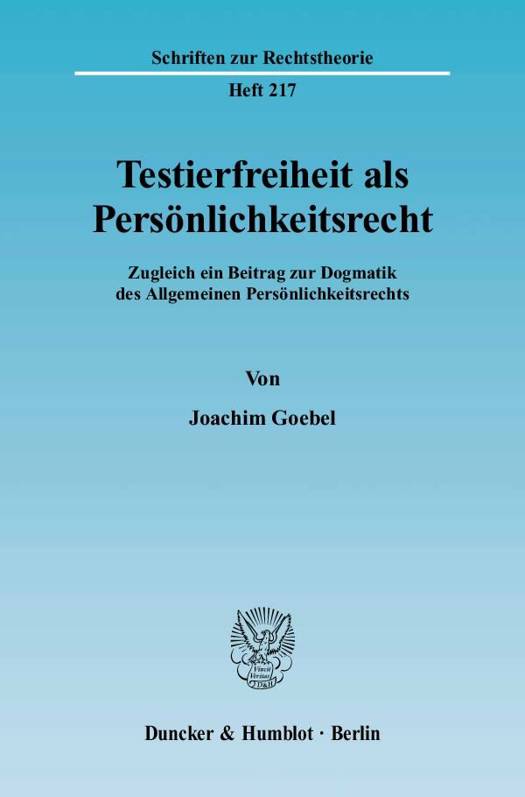 Die theoretischen Grundlagen der Testierfreiheit gelten seit langem als geklärt. Das objektive Erbrecht wird weithin als genuines Vermögensrecht begriffen, welches zudem mit familiaristischen Wertungen durchschossen ist. Die Testierfreiheit wird dementsprechend als fortgesetzte Eigentümerfreiheit angesehen. Mit einer derartigen Konzeption sind indes gravierende dogmatische Nachteile verbunden. Denn mit ihr können die anerkannten Wertungen des geltenden Erbrechts (wie etwa die materielle Höchstpersönlichkeit des Testaments oder das erbrechtliche Willensdogma) nicht erklärt werden. Hier setzt der Verfasser an. Er versucht eine theoretische Neubegründung der Testierfreiheit. Die These ist, daß sie vornehmlich als ein Persönlichkeitsrecht begriffen werden muß, mit dem der einzelne seinen eigenen Tod verarbeiten und damit seine Individualität und Persönlichkeit ausprägen kann.