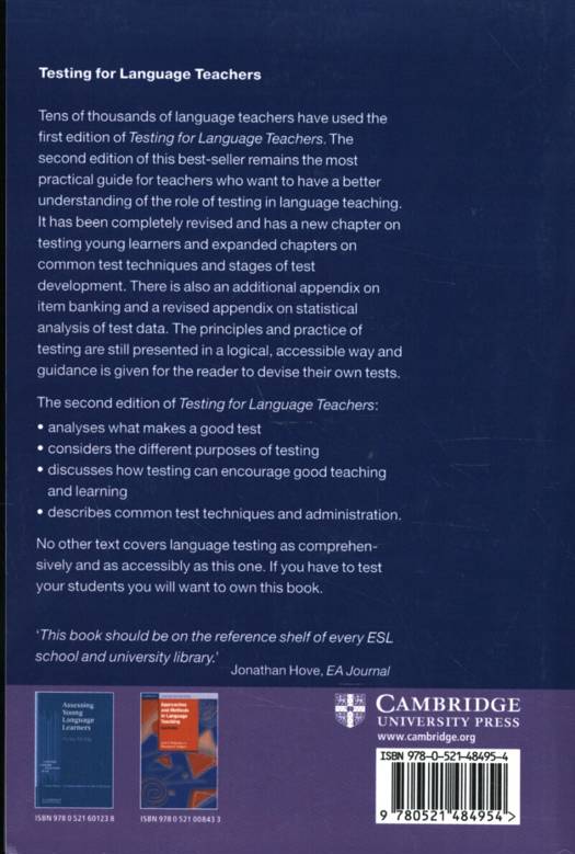 This second edition remains the most practical guide for teachers who want to have a better understanding of the role of testing in language teaching. It has a new chapter on testing young learners and expanded chapters on common test techniques and testing overall ability.
