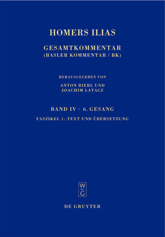 Der vorliegende Text wurde aus Martin L. Wests Ilias-Edition in der Bibliotheca scriptorum Graecorum et Romanorum Teubneriana (Stuttgart/Leipzig/München 1998/2000) übernommen. Für die Belange des Kommentars hat Martin West den apparatus criticus neu gestaltet und die wichtigsten Hinweise zur Textgestaltung im untenstehenden Abschnitt 'Orthographisches' (S. X-XVI) zusammengefaßt; der Testimonien-Apparat konnte hier entfallen. Einen Abriß der ÜberlieferungsGeschichte bietet das Kapitel 'Zur Geschichte des Textes' (GT) im ProlegomenaBand. - Eine typographische Besonderheit der vorliegenden Ausgabe stellt die Hervorhebung der direkten Reden durch Kursivsatz dar. Damit wird dem 'Fokalisations'-Unterschied zwischen Erzähler-Text und Figuren-Sprache Rechnung getragen, dem im Kommentar besondere Aufmerksamkeit geschenkt wird (s. dazu das Prolegomena-Kapitel 'Homerische Poetik in Stichwörtern' s.v. 'Sekundäre Fokalisation').