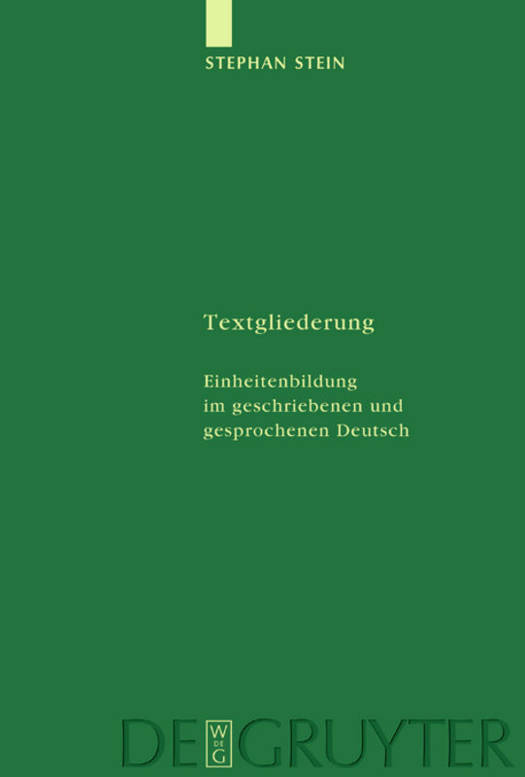 Die Mittel und Verfahren für die Gliederung von Texten in Einheiten werden seit den Anfängen von Text- und Gesprächslinguistik kontrovers diskutiert. Die vorliegende Arbeit führt die Ergebnisse verschiedener Forschungsrichtungen zusammen und vergleicht anhand zahlreicher detaillierter Beispielanalysen die Gliederung geschriebener und gesprochener Texte (verschiedener Text- bzw. Gesprächssorten): Auf der Grundlage des Nähe/Distanz-Konzeptes werden für beide medialen Varietäten die Gliederungsressourcen (syntaktisch, lexikalisch-semantisch, prosodisch usw.) und die Gliederungseinheiten (Ellipse, Satz, Absatz; Äußerungseinheit, Turn usw.) systematisch aufeinander bezogen. Vorgestellt wird ein Beschreibungskonzept, das auch den Einfluss pragmatischer Faktoren auf die Äußerungsgestaltung ("pragmatische Syntax") konsequent berücksichtigt.