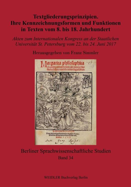 Der vorliegende Band enthält 25 Beiträge zu den Textgliederungsprinzipien in Textsorten und Textallianzen vom Althochdeutschen bis zum Neuhochdeutschen. Behandelt werden Marginalien in Bibeln und Bibelkommentaren, sprachliche Register in der Tatianbilingue und in Otfrids Evangelienbuch, Exklamative im Mittelhochdeutschen, Kapitelüberschriften in literarischen Texten, Summarien in Bibeltraditionen, der Tristan-Roman, die Livländische Reimchronik, Regelkommentare, Gebete und Gebetbücher, Stammbücher, Sonette, periodische Zeitungen einschließlich der Gunsterweisungsberichte, Briefwechsel, ein Kochbuch und ein Reiseratgeber sowie computerunterstützte Analysen typographischer Mittel in erbaulichen Textsorten und Zeitungen.