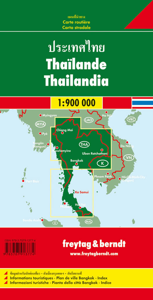 Deze recto/verso gedetailleerde wegenkaart van Thailand is zeer geschikt voor het plannen en rondtrekken door het land.
